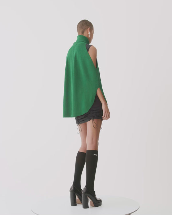 The MONSE Cold Shoulder Turtleneck Sweater features a fitted collar and an oversized body with a cold shoulder detail. Pair yours over the Deconstructed Mini Skirt.