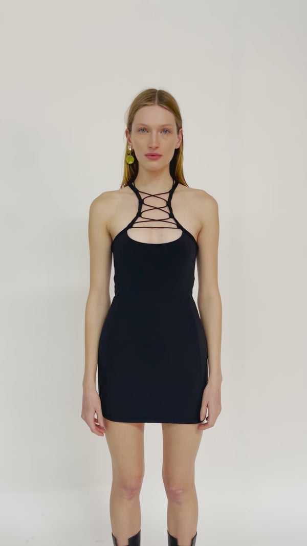 MONSE Criss Cross Sports Dress in Black on Model Lookbook Front View