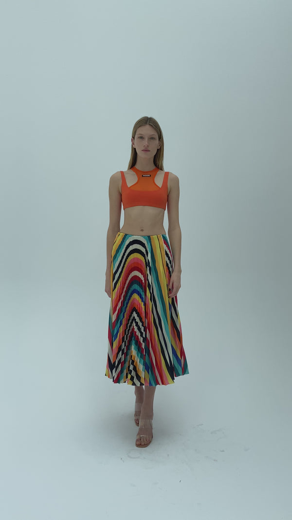 Follow the rainbow. The MONSE Rainbow Pleated Skirt is a long-length, multi-colored skirt with a high side slit and hidden back zipper. This relaxed, silk lined number feels buttery on your skin, while the slim fitting waist gives you a little definition.