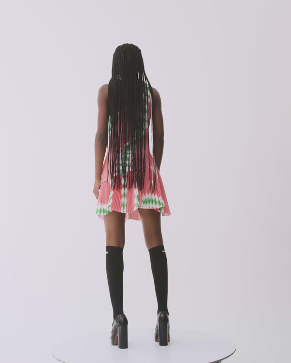 The MONSE Spiral Sleeveless Cowl-neck Top is an asymmetrical top that drapes on the body for a flattering fit. Details include a single carabiner secured strap and the principal spiral checkered print featured throughout the collection. Complete the look with the matching Pleated Spiral Mini Skirt.