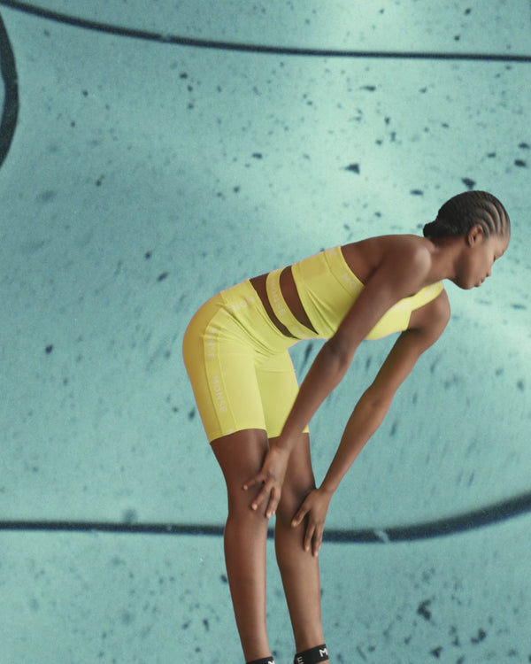 The Zig Zag Crop Top is a MONSE essential that also has the Equinox stamp of approval. Brought back in two new colorways, the top is designed as a one shoulder bra top with criss crossed elastic logo bands. Pair yours with the Side Logo Bike Shorts.