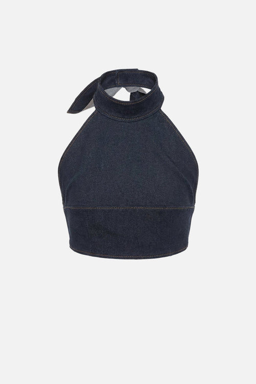 Halter Top With Leather Detail -
