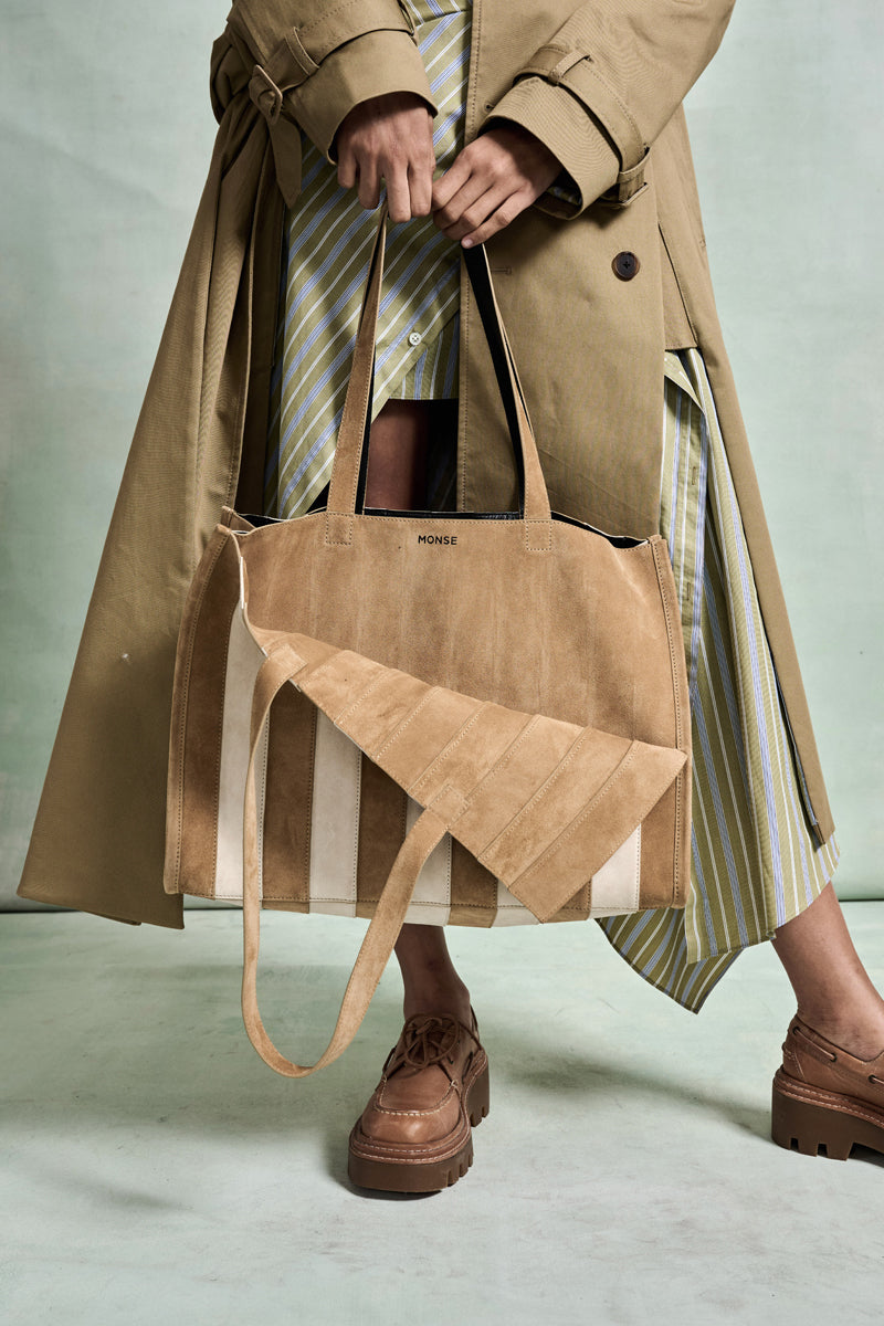 Spring 2026 marks MONSE’s 10th anniversary with a nautical-inspired collection. Sailor stripes, relaxed knits, crisp shirting, and deconstructed tailoring headline the season, alongside fresh updates to the double-waistband pant. While Hero pieces like the bonded leather purse-skirt, pearl and crystal minis, and buttery draped chiffon gowns anchor the season reinforcing MONSE’s DNA. The MONSE x Sperry collaboration debuts this Spring, bringing a modern twist to the iconic boat shoe. Spring 2026 proves that MONSE’s playful spirit and refined craftsmanship remain as compelling as ever.